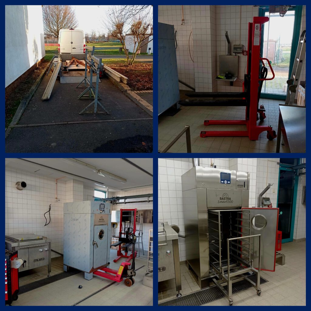 Nicht ohne Schweiß und Mühe, vor allem aber mit „Geduld und Spucke“ ist kurz vor Weihnachten der Einbau des neuen Rauchofens der Firma Herfurt in unserer Fleischerei gelungen. 💪