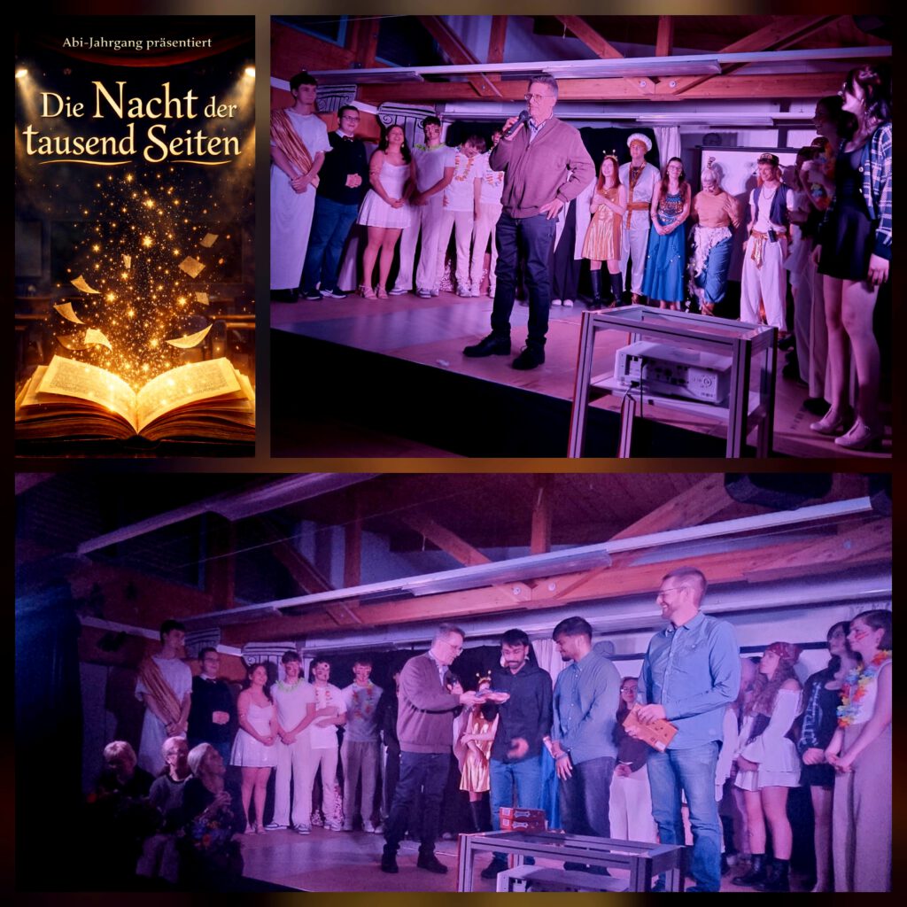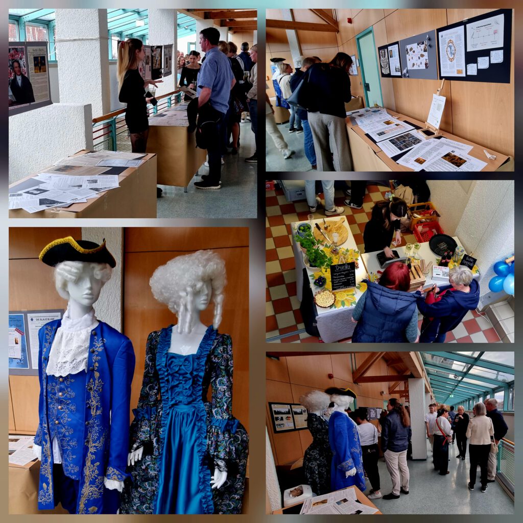 Bereits am Morgen begannen die Vorbereitungen: Die sonst vertrauten Schulflure verwandelten sich in eine Ausstellung, die die Besucher auf eine Reise durch verschiedene Literaturepochen und zu bedeutenden Autoren mitnahm. Ab 17 Uhr präsentierte der Literaturkurs von Frau Schönnagel seine literarischen Zeitungen und gab Einblicke in die Arbeit der vergangenen Monate.